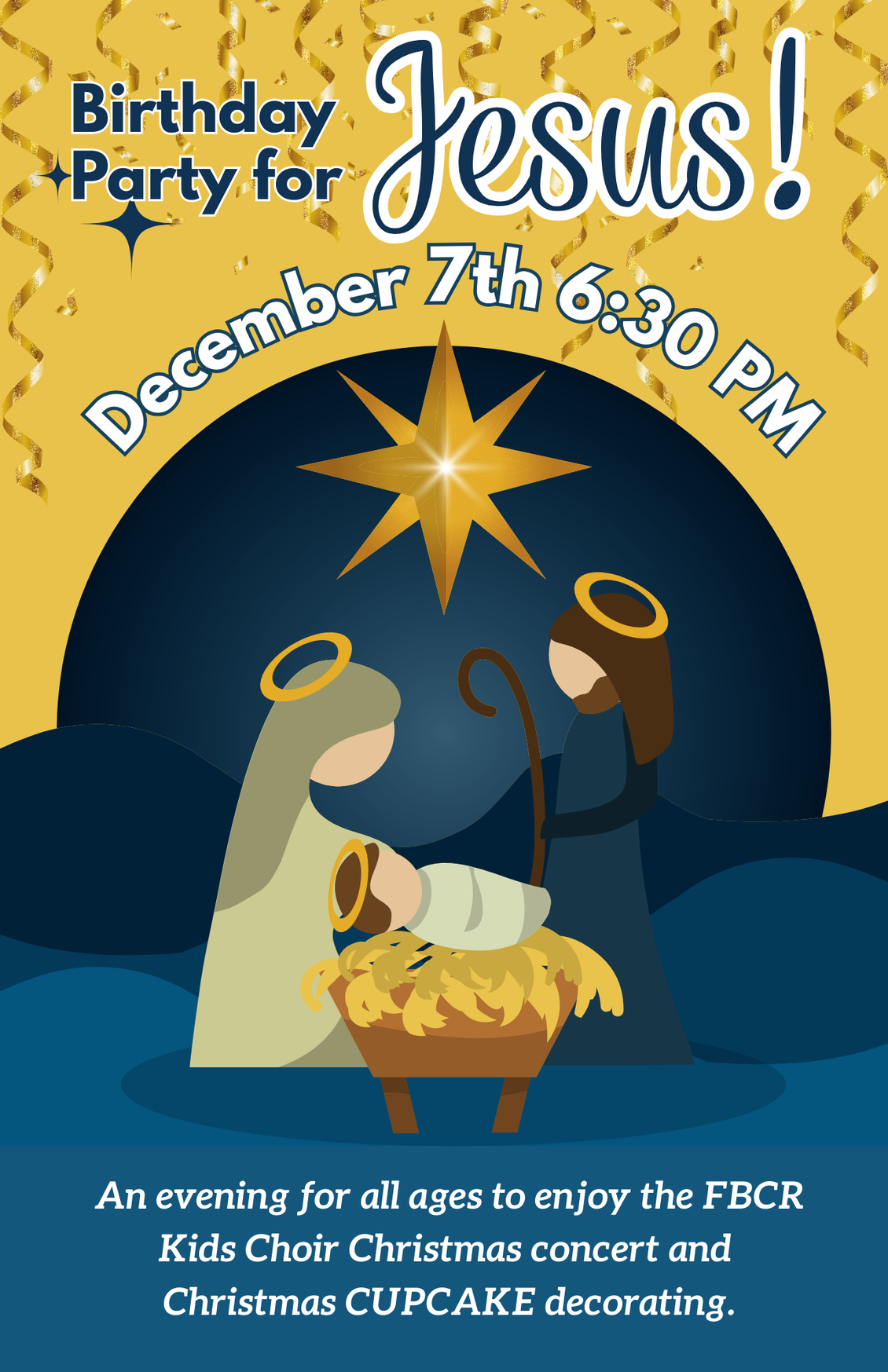 A worship service for the whole family with music led by the FBCR Kid's Choir followed by Christmas cupcake decorating.